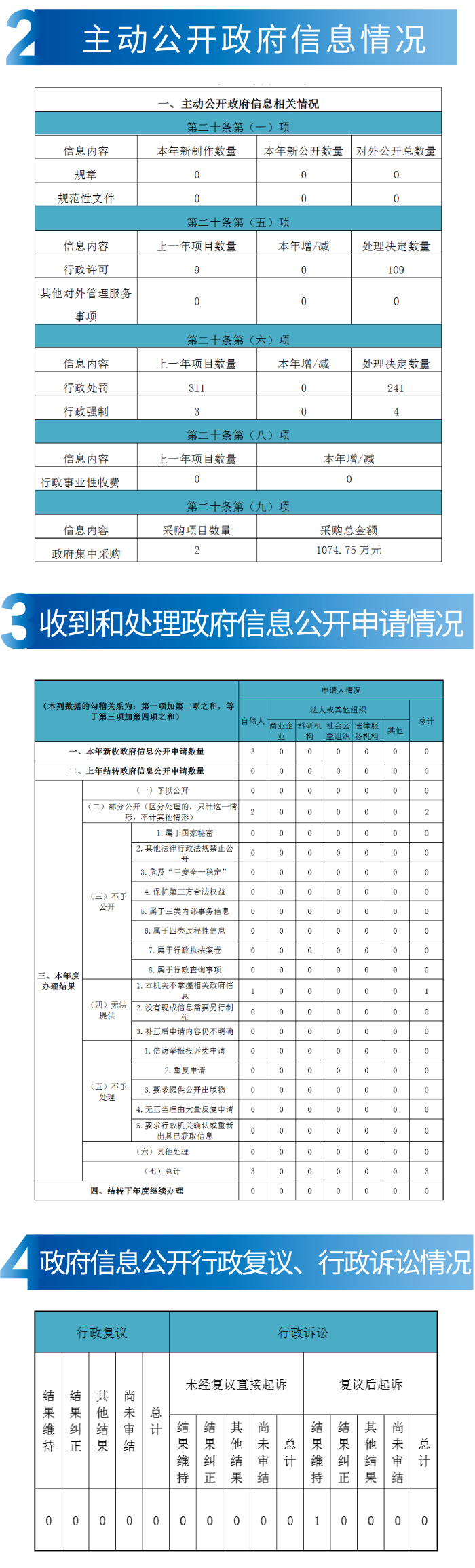 四、政府信息公開行政復議、行政訴訟情況