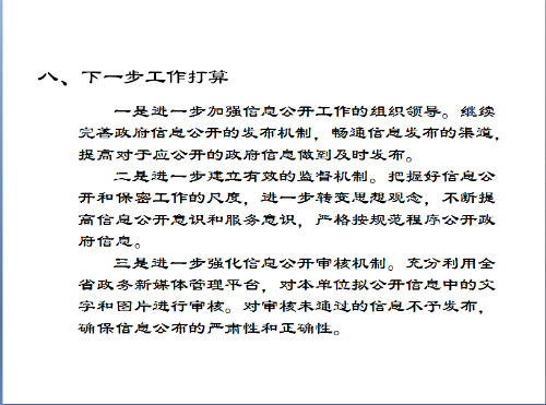 ?三是進一步強化信息公開審核機制。充分利用全省政務新媒體管理平臺,對本單位擬公開信息中的文字和圖片進行審核。對審核未通過的信息不予發布,確保信息公布的嚴肅性和正確性。