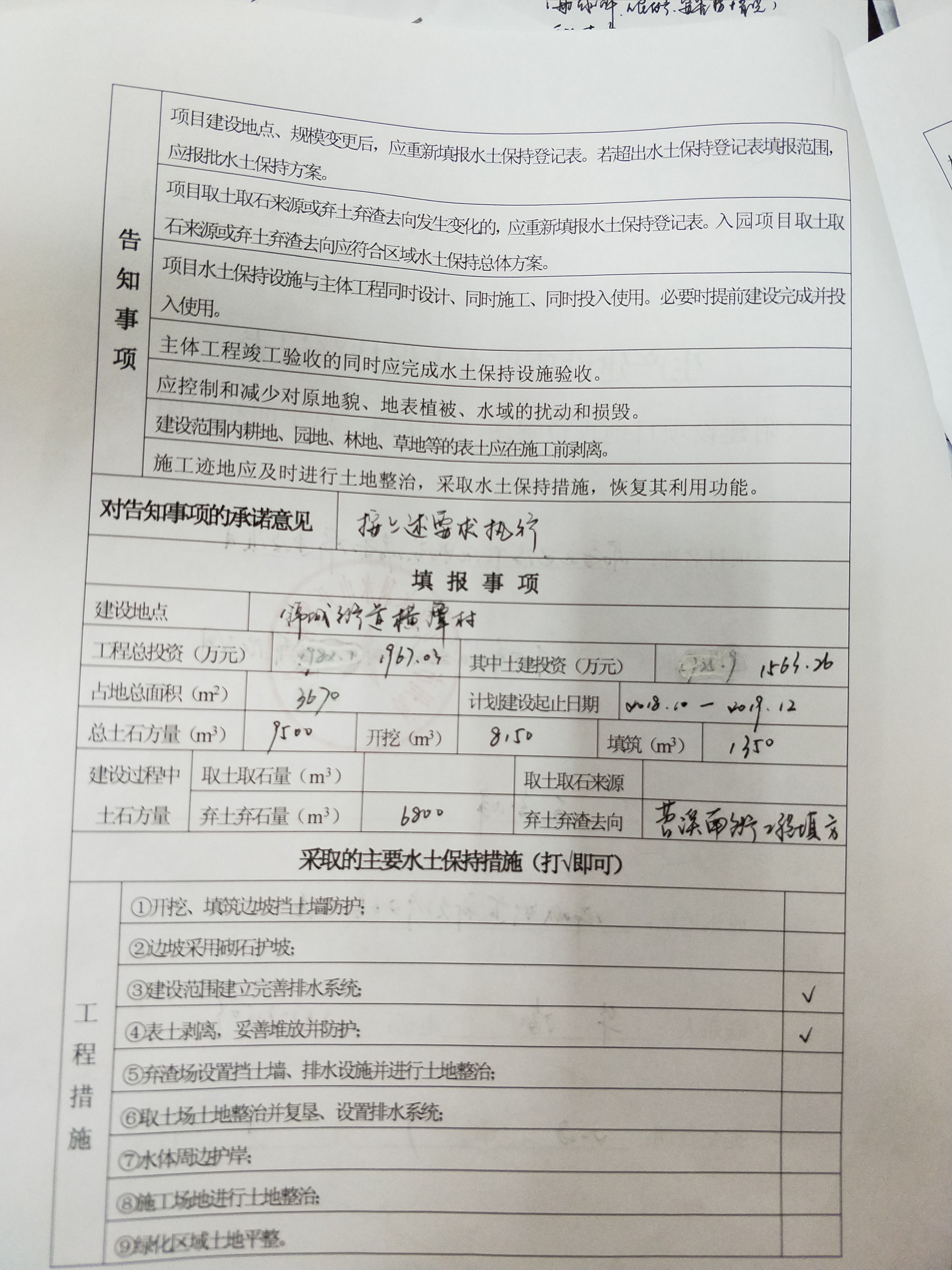 生產建設項目水土保持登記表