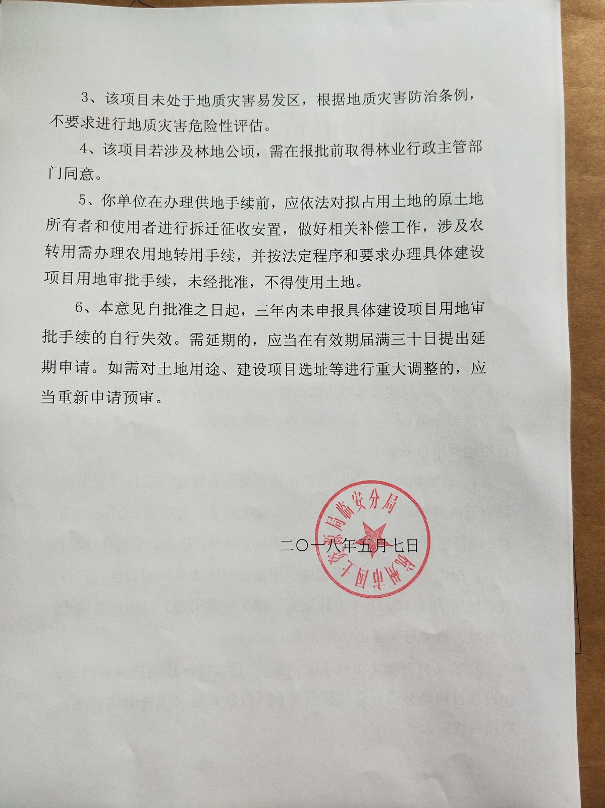 關于臨安區區級防汛物資儲備倉庫建設項目用地預審意見