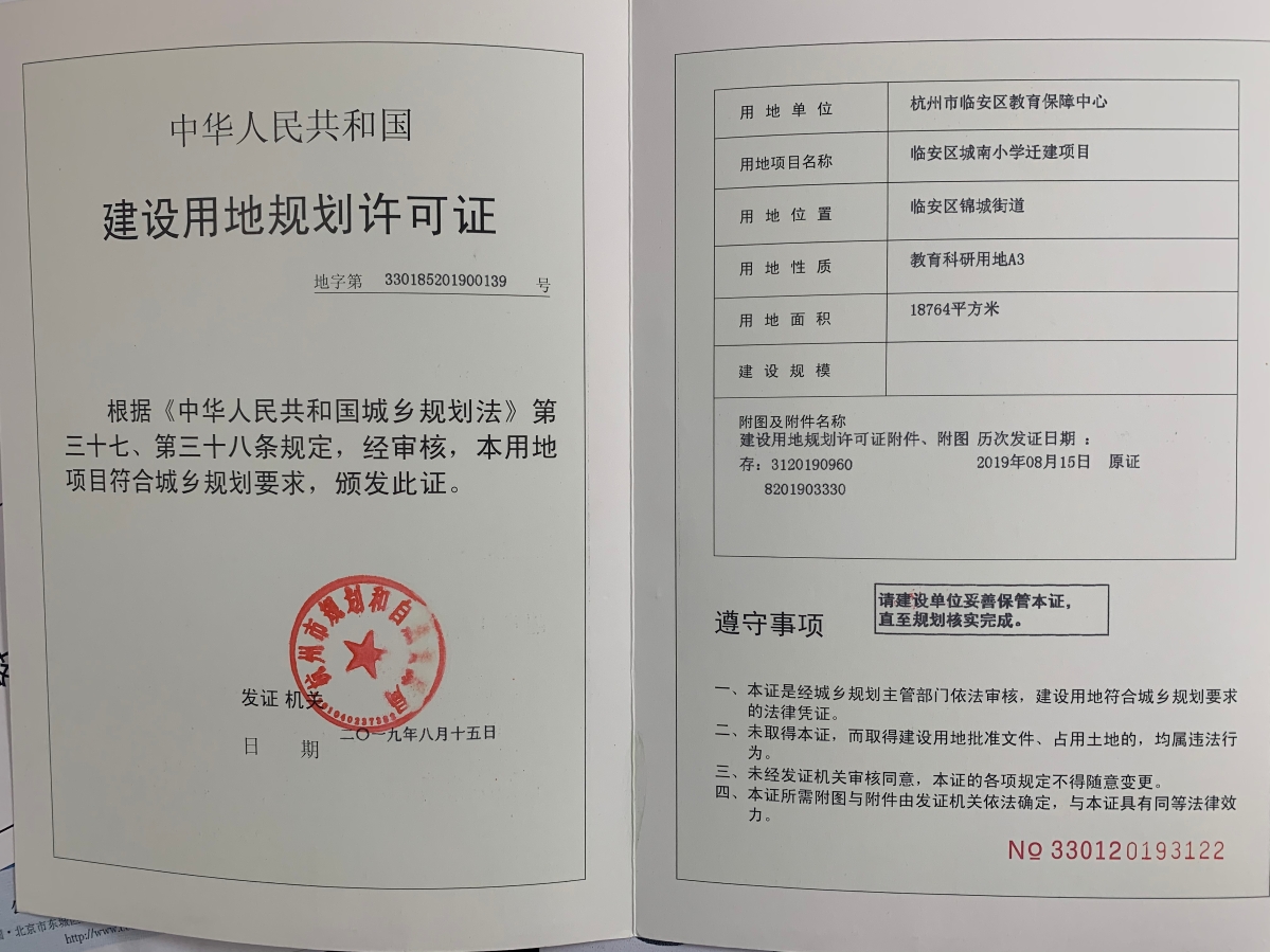 城南小學(xué)遷建項(xiàng)目用地規(guī)劃許可證