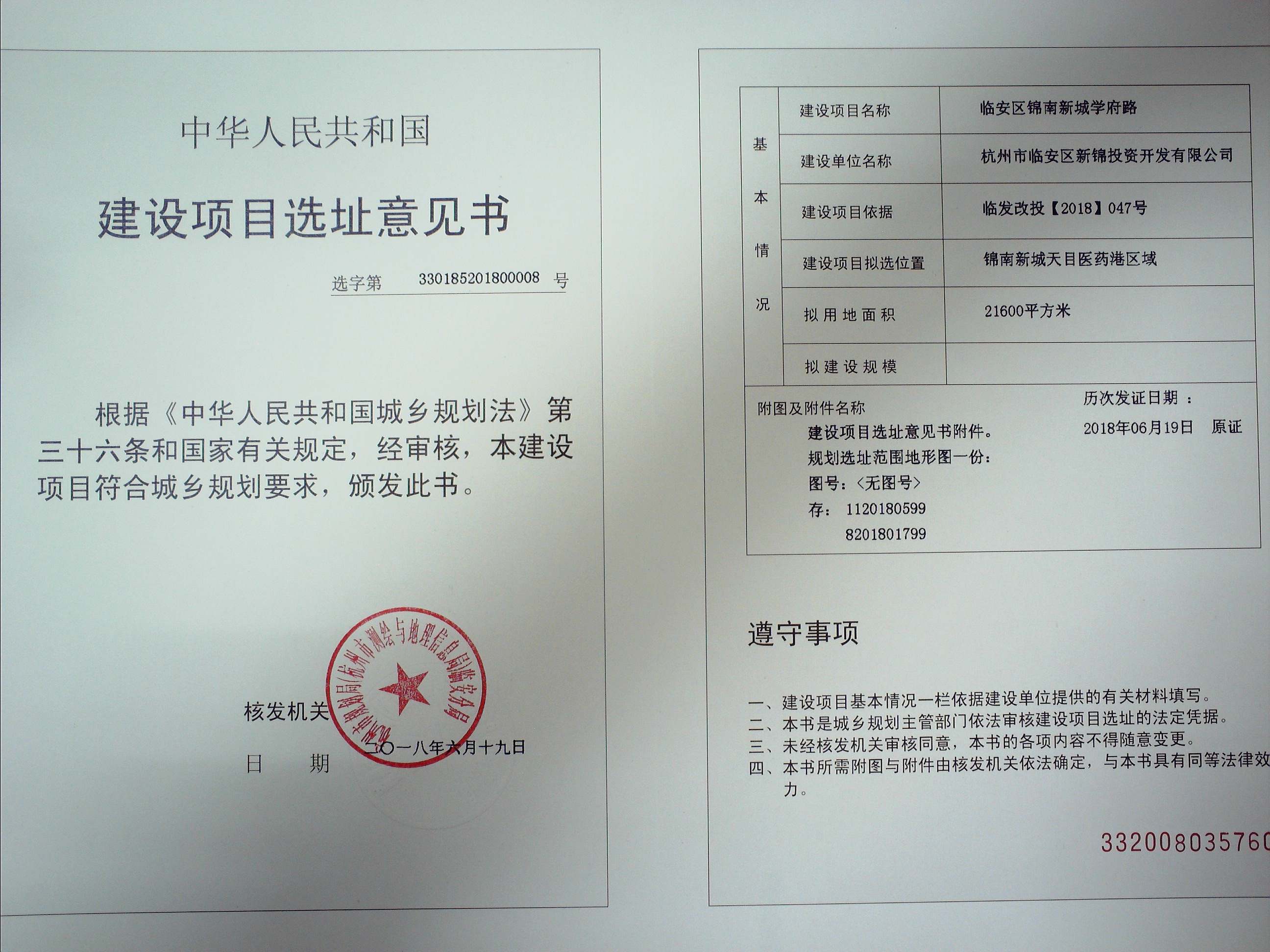 臨安區錦南新城學府路工程建設項目選址意見審批結果