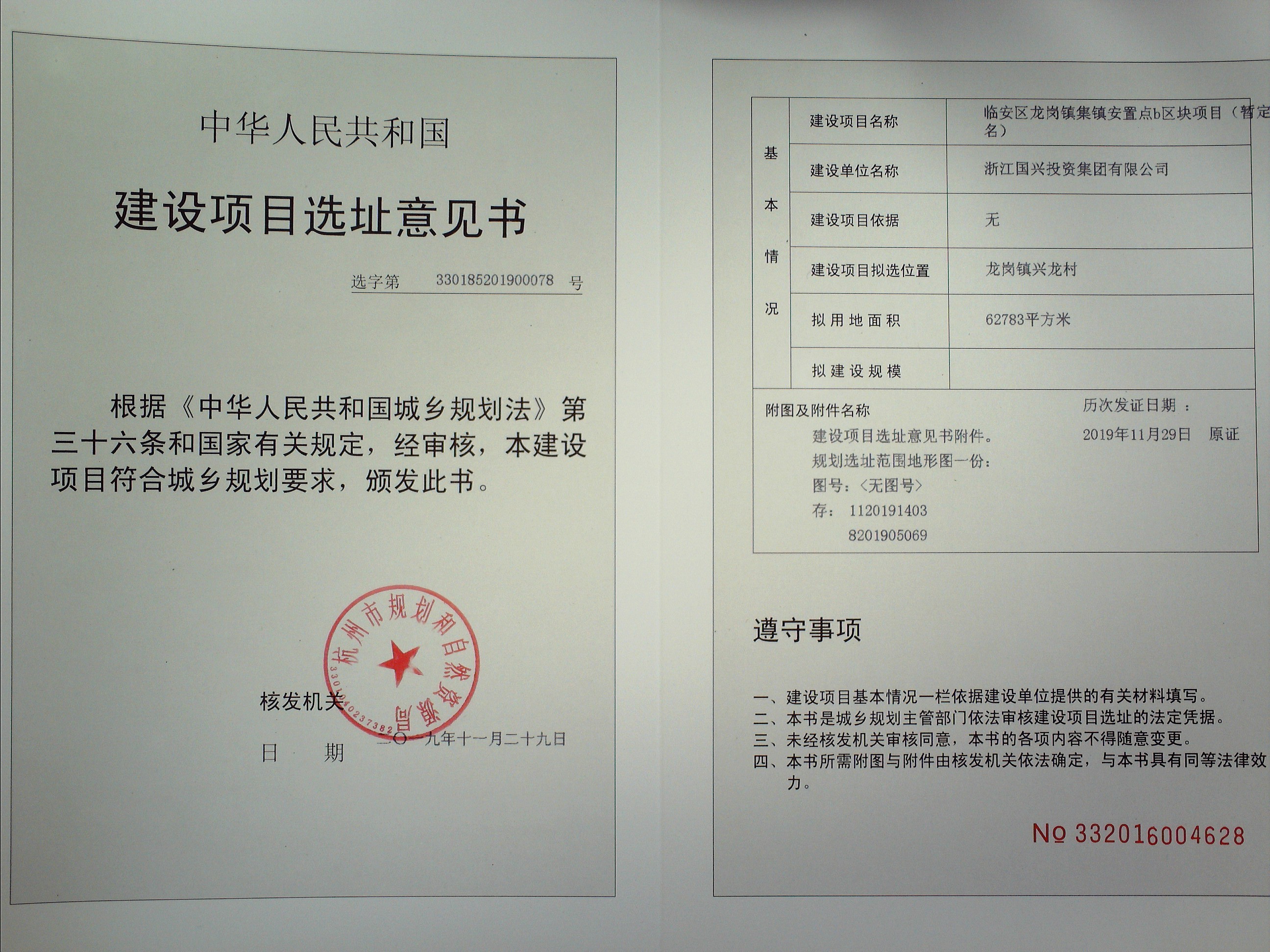 臨安龍崗鎮集鎮安置點首發區塊建設項目選址意見審批結果