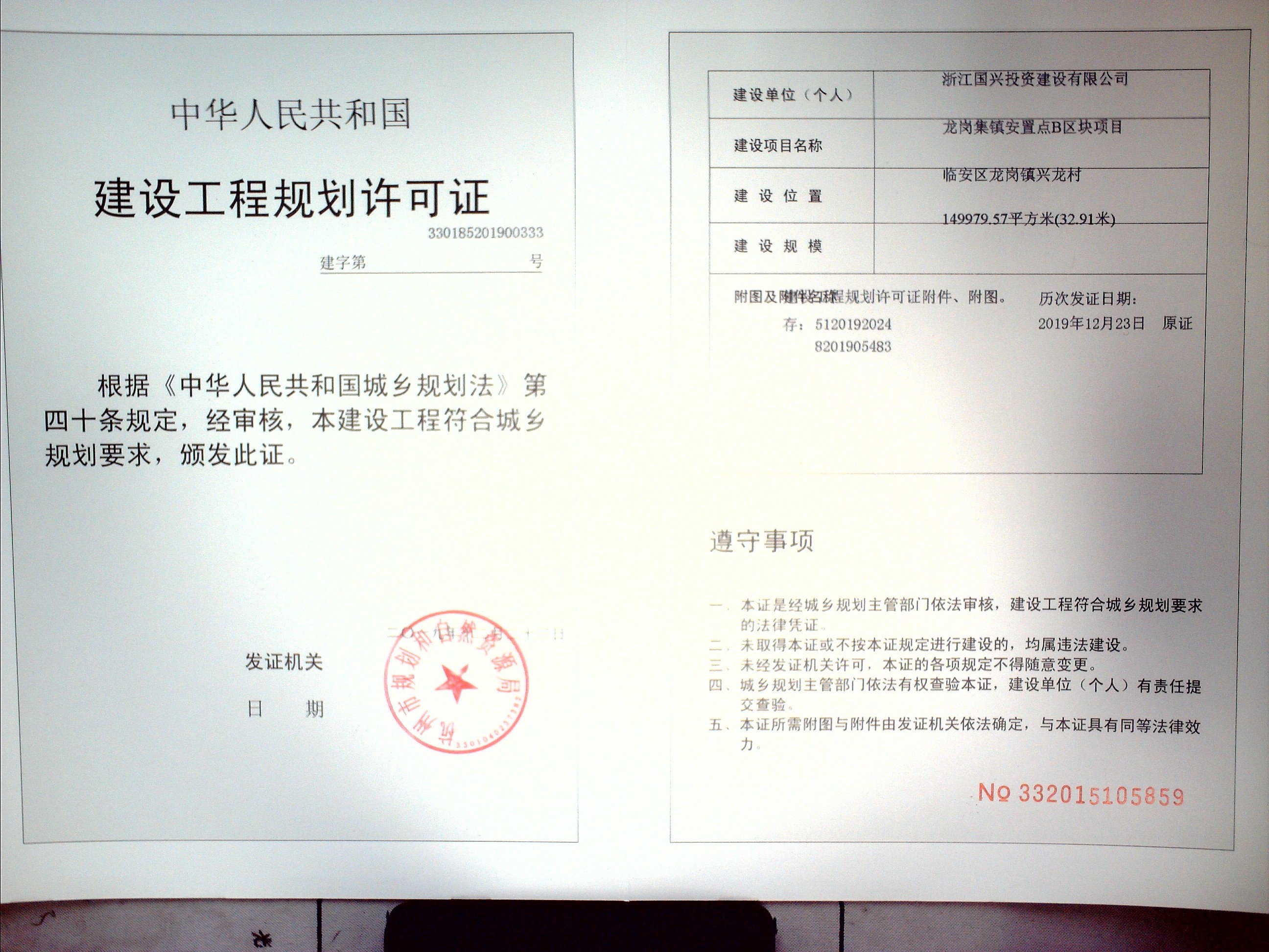 臨安龍崗鎮集鎮安置點首發區塊建設工程規劃類許可審批結果