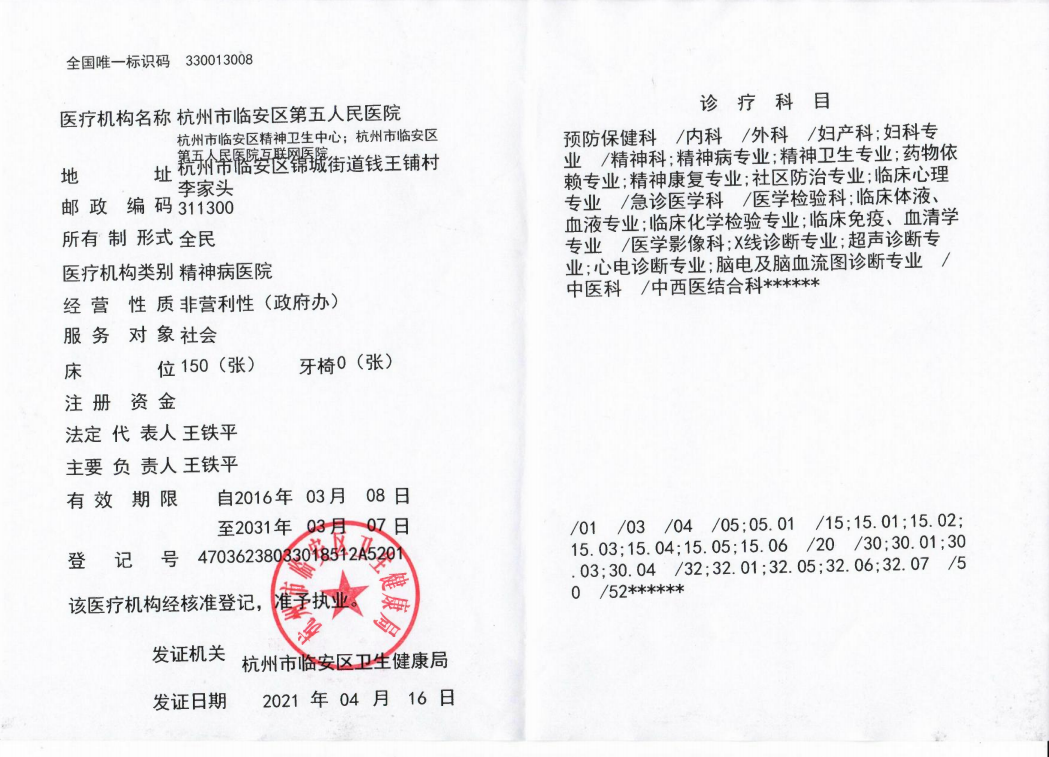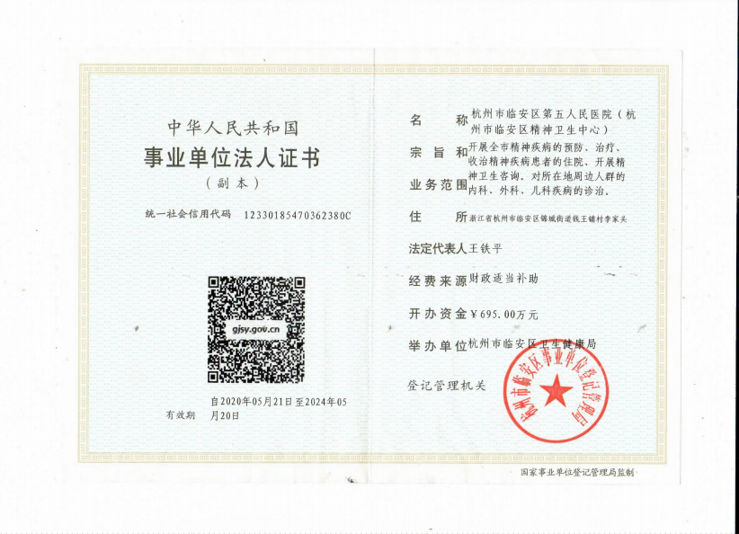 安康醫(yī)院項目建設(shè)單位法人證書及執(zhí)業(yè)許可證