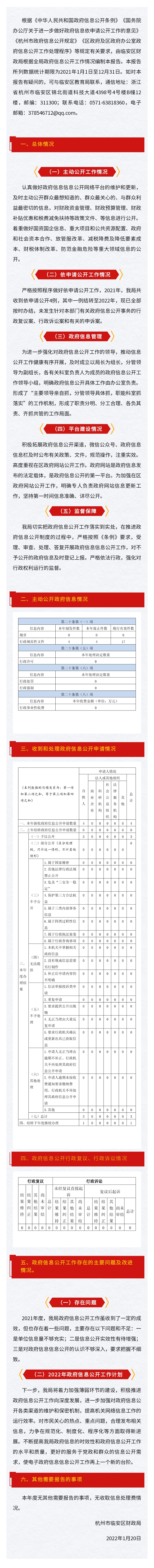 根據《中華人民共和國政府信息公開條例》《國務院辦公廳關于進一步做好政府信息依申請公開工作的意見》《杭州市政府信息公開規定》《區政府及區政府辦公室政府信息公開工作處理程序》等規定有關要求,由臨安區財政局根據全局政府信息公開工作情況編制本報告。本報告所列數據統計期限為2021年1月1日至12月31日。如對本報告有疑問的,可與臨安區財政局聯系,通信地址:浙江省杭州市臨安區錦北街道科技大道4398號4號樓B幢12樓,郵編:311300;聯系電話:0571-63818360,電子郵箱:378546712@qq.com。