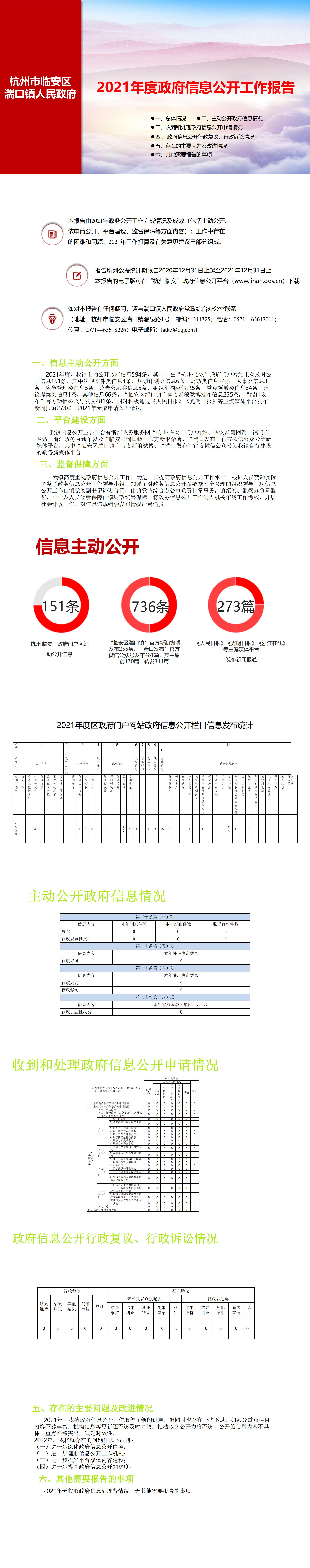 (一)信息主動公開方面。按照《條例》要求,我鎮認真對政府產生的信息進行收集,按照“公開是原則,不公開是例外”的要求,及時發布日常工作動態和工作文件,改進工作作風,方便群眾辦事和監督。2021年度,我鎮主動公開政府信息594條,其中,在“杭州·臨安”政府門戶網站主動及時公開信息151條,其中法規文件類信息4條,規劃計劃類信息6條,財政類信息24條,人事類信息3條,應急管理類信息3條,公告公示類信息5條,組織機構類信息5條,重點領域類信息34條,建議提案類信息1條,其他信息66條。“臨安區湍口鎮”官方新浪微博發布信息255條,“湍口發布”官方微信公眾號發文481條,同時積極通過《人民日報》《光明日報》等主流媒體平臺發布新聞報道273篇。2021年無依申請公開情況。