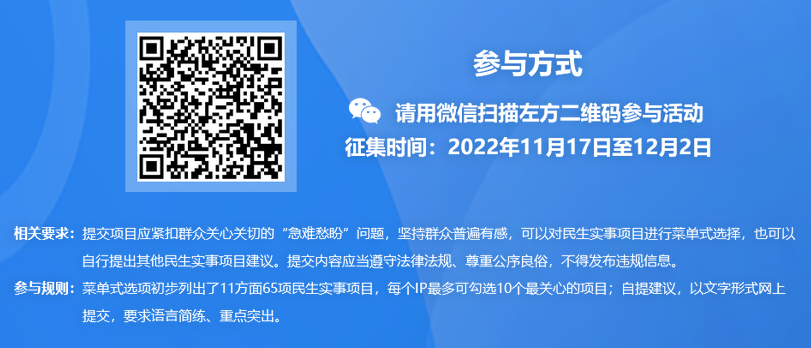 群眾普遍有感,可以對民生實事項目進行菜單式選擇,也可以自行提出其他民生實事項目建議。提交內(nèi)容應當遵守法律法規(guī)、尊重公序良俗,不得發(fā)布違規(guī)信息。