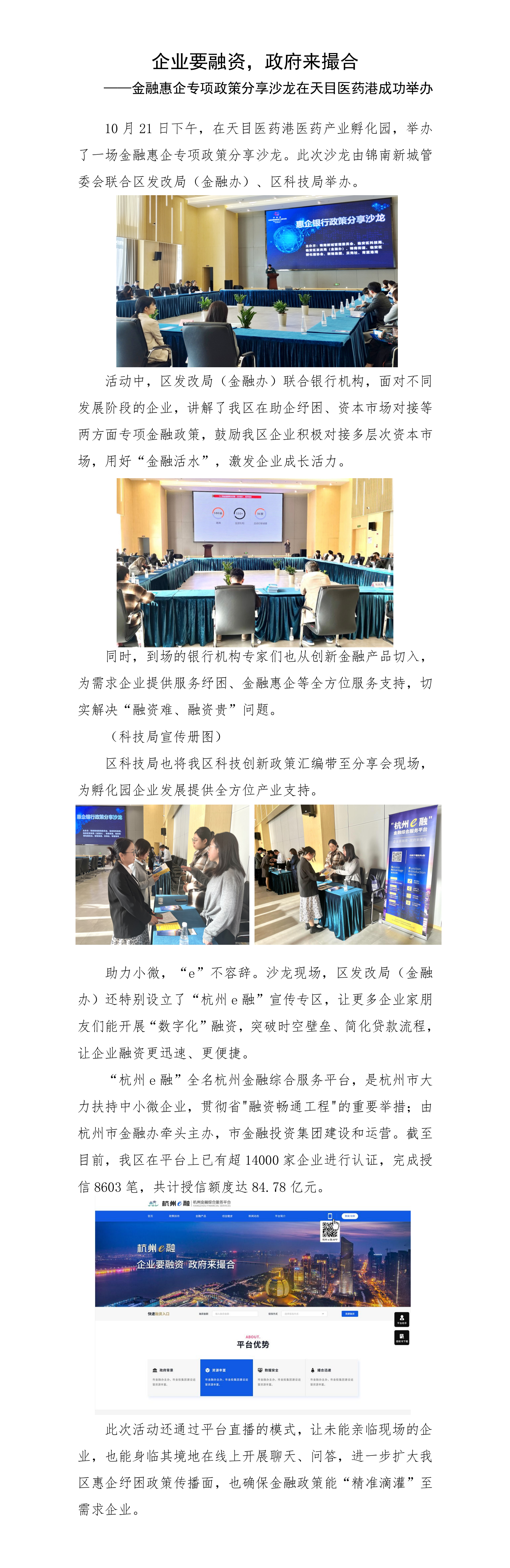 企業要融資,政府來撮合 ——金融惠企專項政策分享沙龍在天目醫藥港成功舉辦