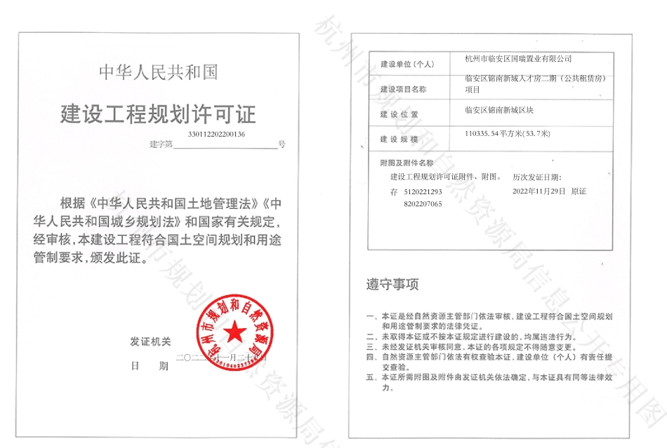 臨安區錦南新城人才房二期(公共租賃房)項目建設工程規劃類許可審批結果