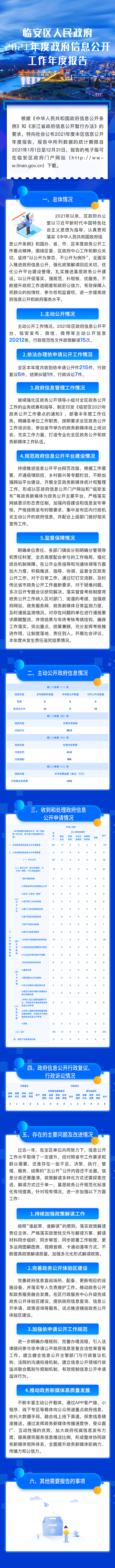 根據(jù)《中華人民共和國(guó)政府信息公開(kāi)條例》和《浙江省政府信息公開(kāi)暫行辦法》的要求,特向社會(huì)公布2021年度本區(qū)信息公開(kāi)年度報(bào)告,報(bào)告中所列數(shù)據(jù)的統(tǒng)計(jì)期限自2021年1月1日至12月31日,報(bào)告的電子版可在臨安區(qū)政府門(mén)戶網(wǎng)站(http://www.gztsgg.com)下載。