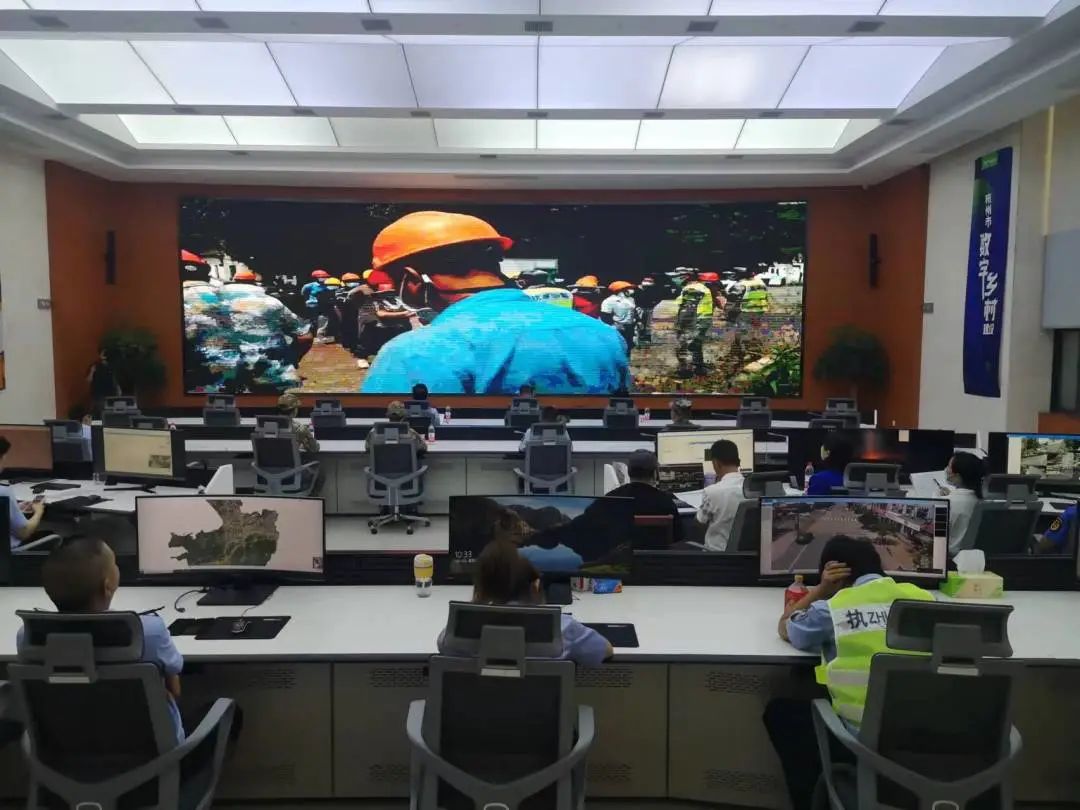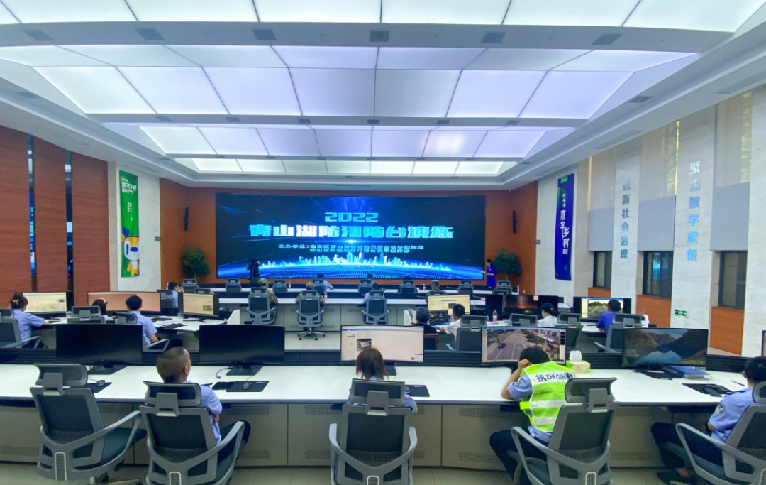 6月14日上午,來自區防指辦、科技城管委會、青山湖街道以及各相關部門負責人齊聚青和翼全域智治運營指揮中心大廳,共同參加2022年青山湖街道防汛防臺演練。
