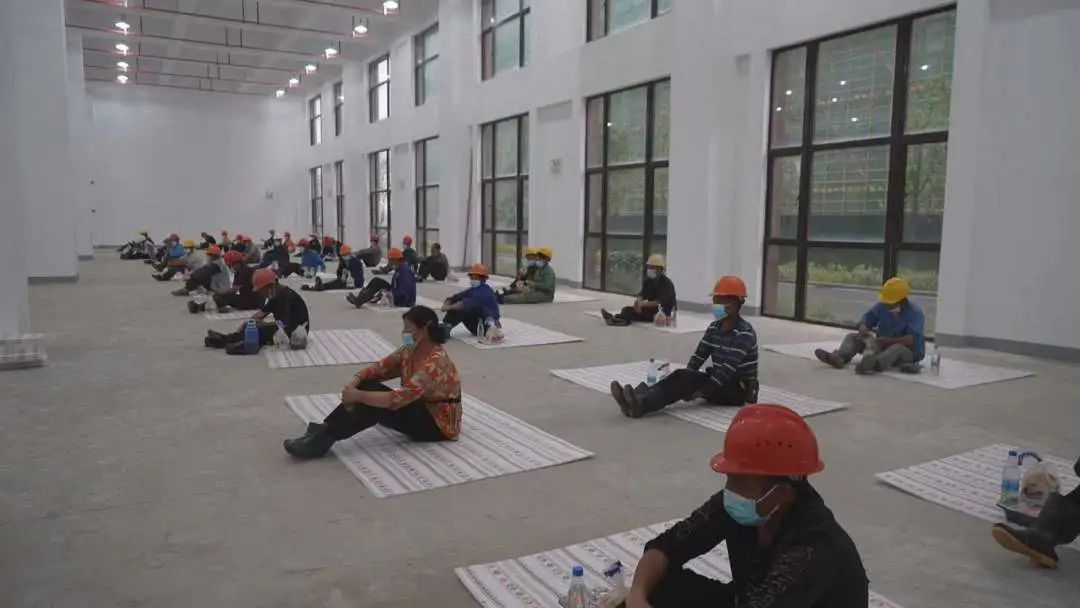 演練現場,分別按照Ⅳ、Ⅲ、Ⅱ級響應模擬場景,由防指辦根據不同等級情況下達指令,并由指揮室根據天氣預報和現場情況指派公共設施組、企業院所組、在建工程組、駐村組、物資保障組作出快速反應,組織工棚內工人有序、快速、安全撤離現場。