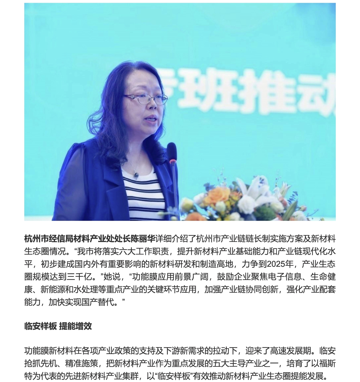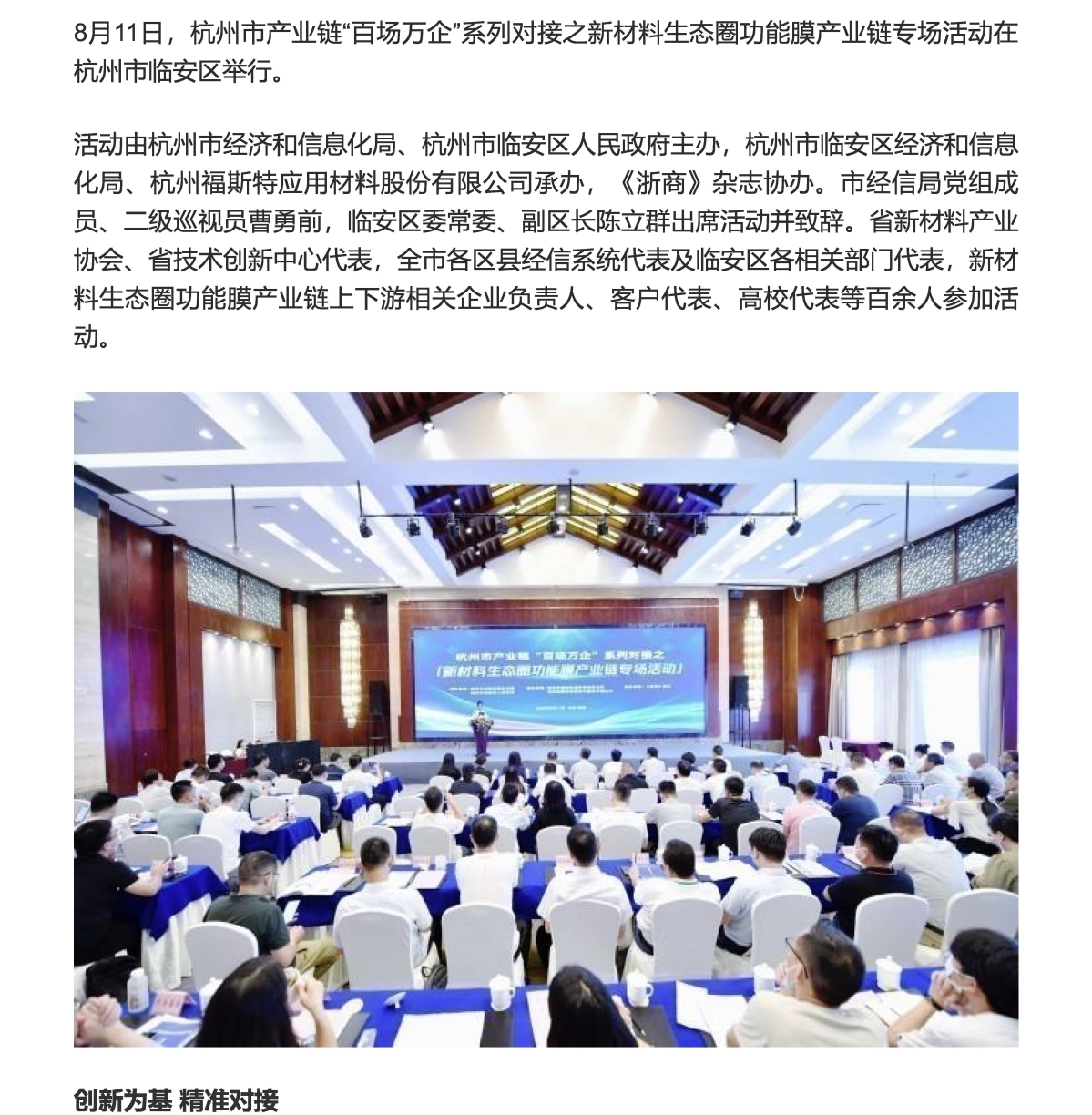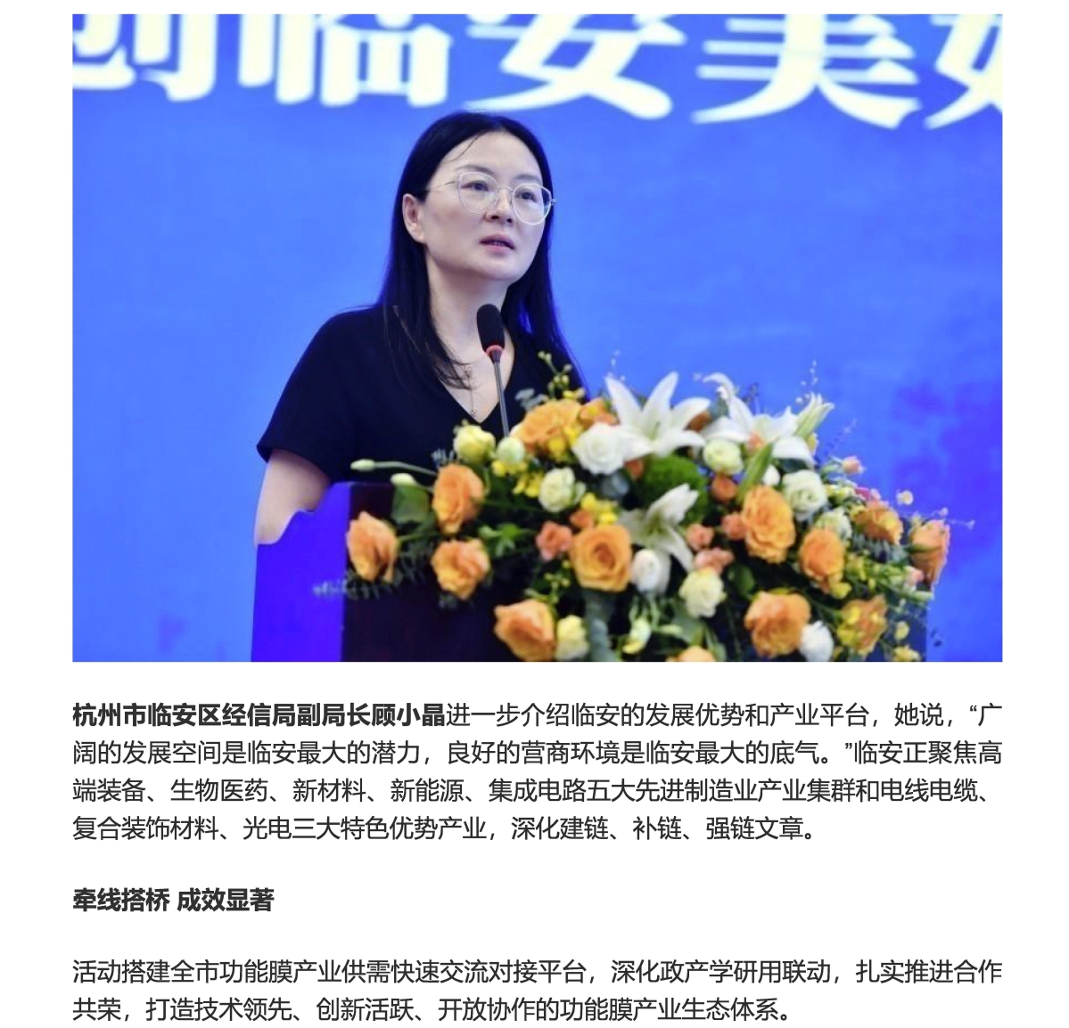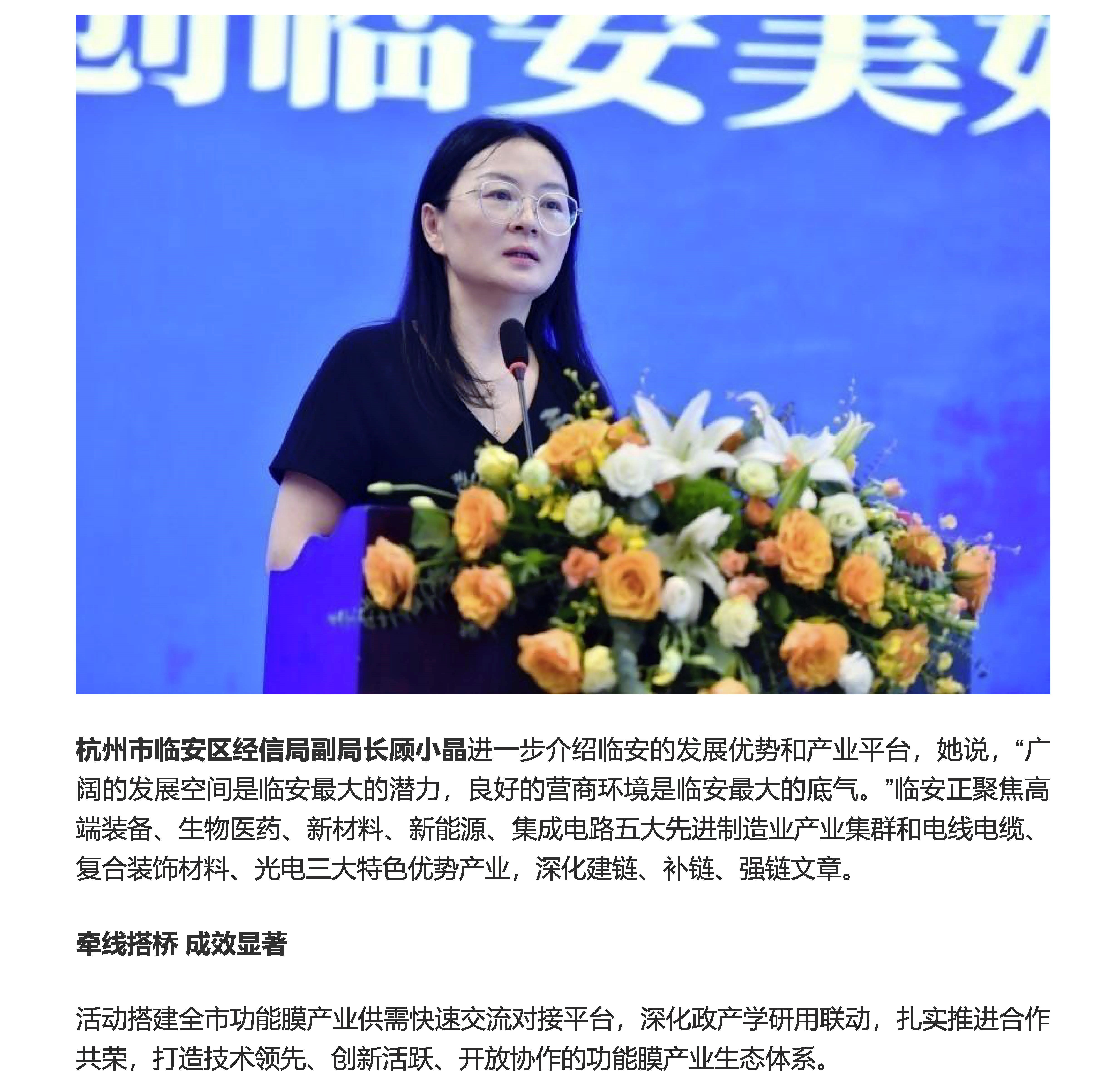 臨安樣板,精準破題!杭州新材料生態圈功能膜產業鏈專場在臨安召開
