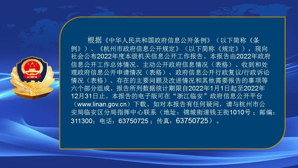【圖解】杭州市公安局臨安區分局2022年政府信息公開工作年度報告