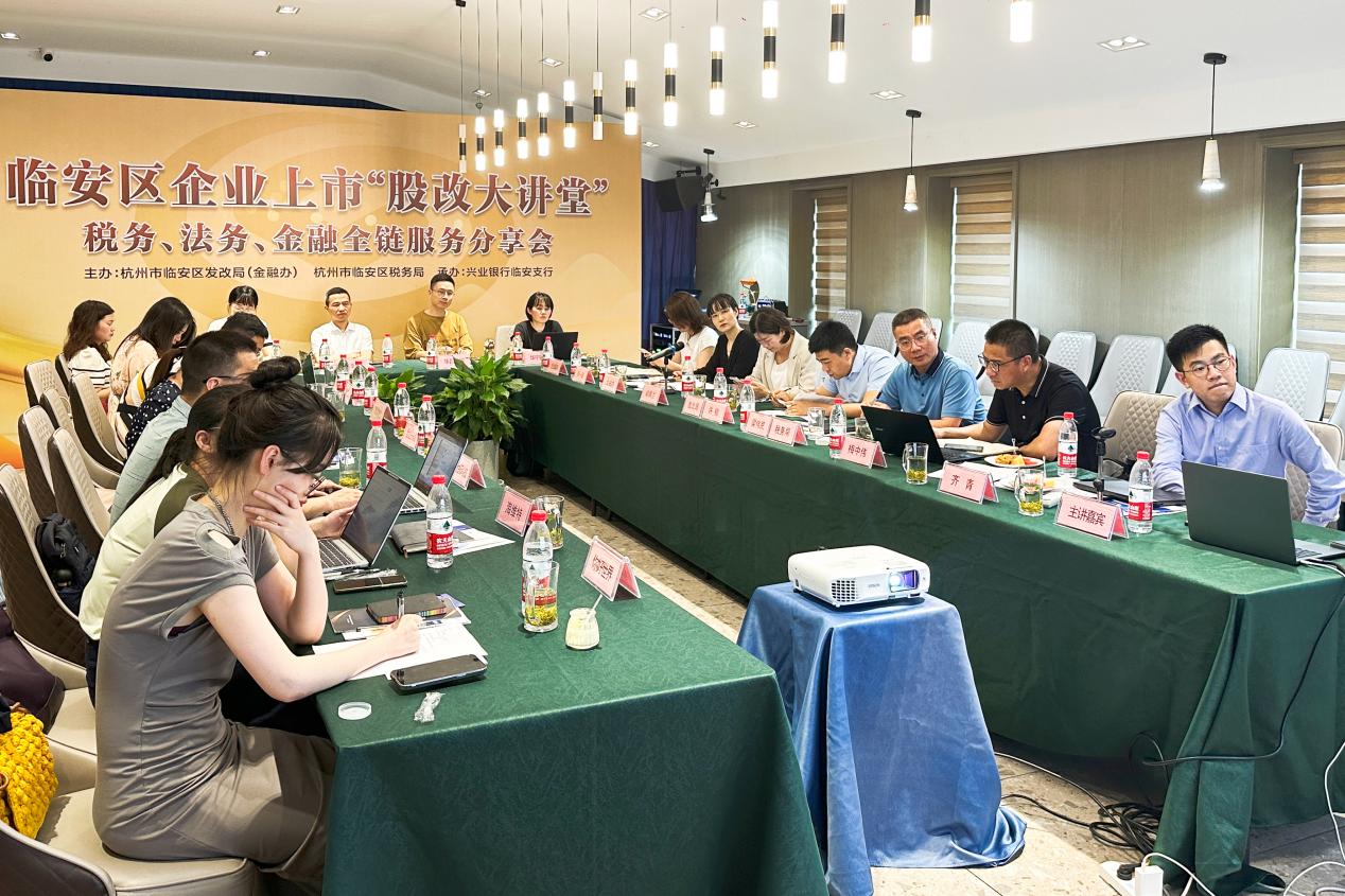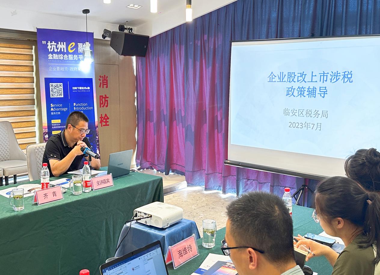 為深化落實“天目鳳凰2.0”專項孵化行動,進一步規范企業上市股改工作,幫助企業走好對接多層次資本市場第一步,7月6日下午,由臨安區發改局(金融辦)、臨安區稅務局共同主辦的臨安區企業上市“股改大講堂”暨稅務、法務、金融全鏈服務分享會成功舉行。活動由區發改局副局長許楨主持,區稅務局四級高級主辦到會指導,10家擬股改上市培育企業參加。