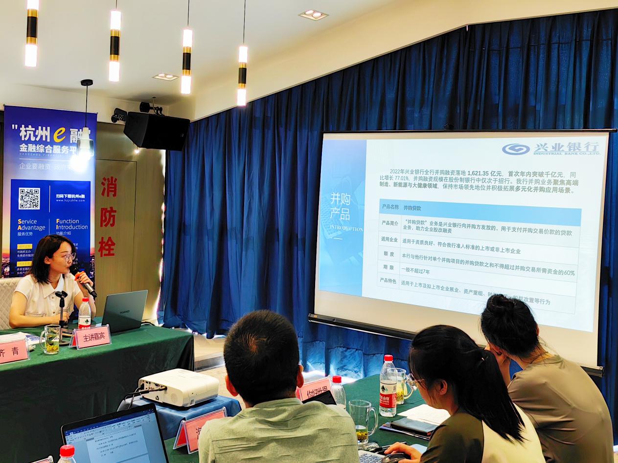 助企紓困,精準扶持,興業銀行杭州分行杭州管理部劉一諾老師與企業做股改及擬上市階段融資探討,重點介紹了為企業提供全生命周期的、集股債貸一體的綜合金融服務。