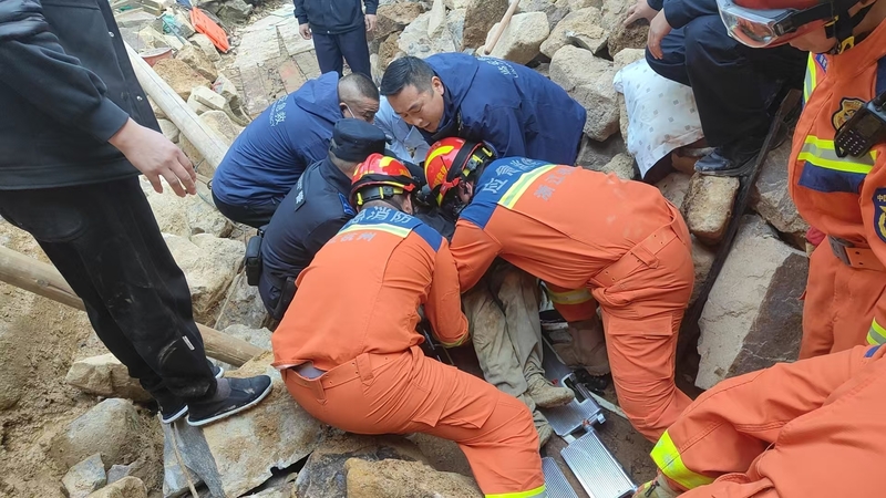 突遇山石滾落,杭州70歲男子骨盆及雙腿被1噸重巨石死死壓住,消防員撐起一條縫隙后成功救出